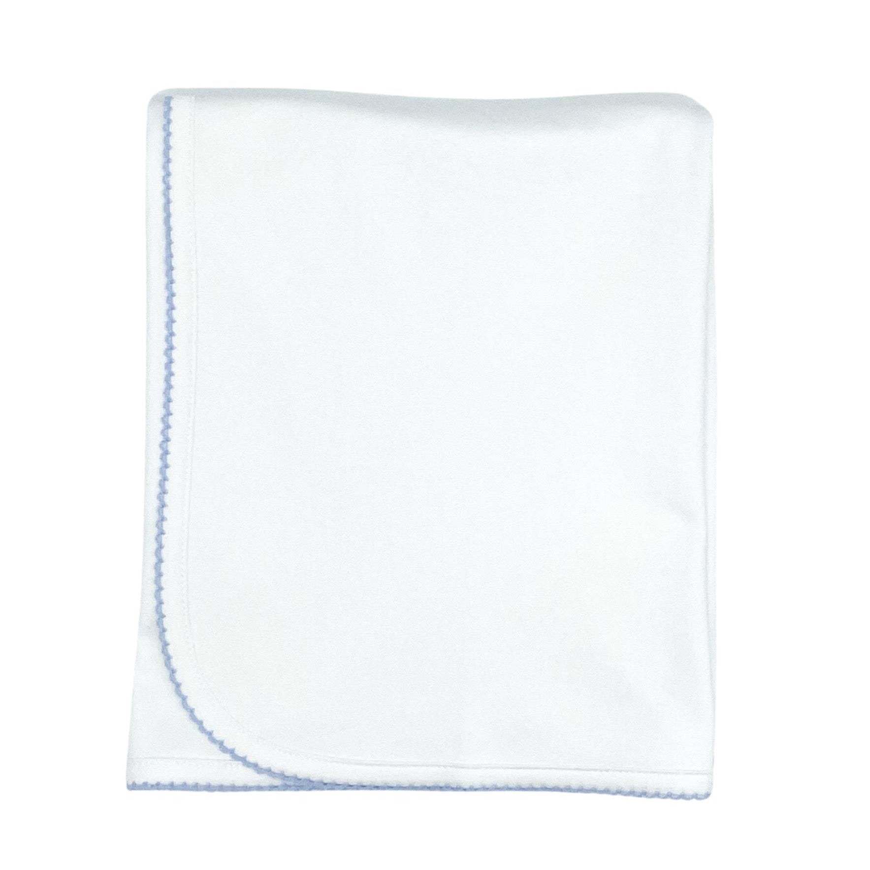 Pima Knit Blanket with Picot Trim - White with Blue
