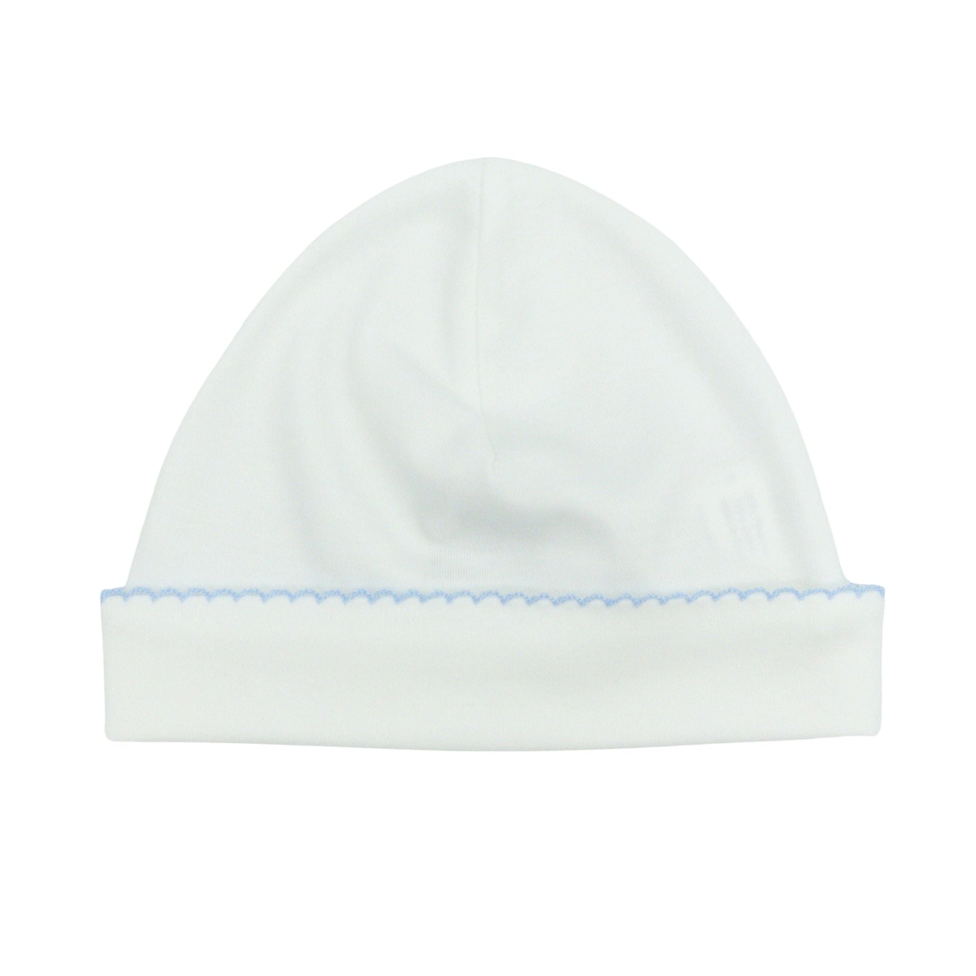 Pima Knit Hat with Picot Trim - White with Blue