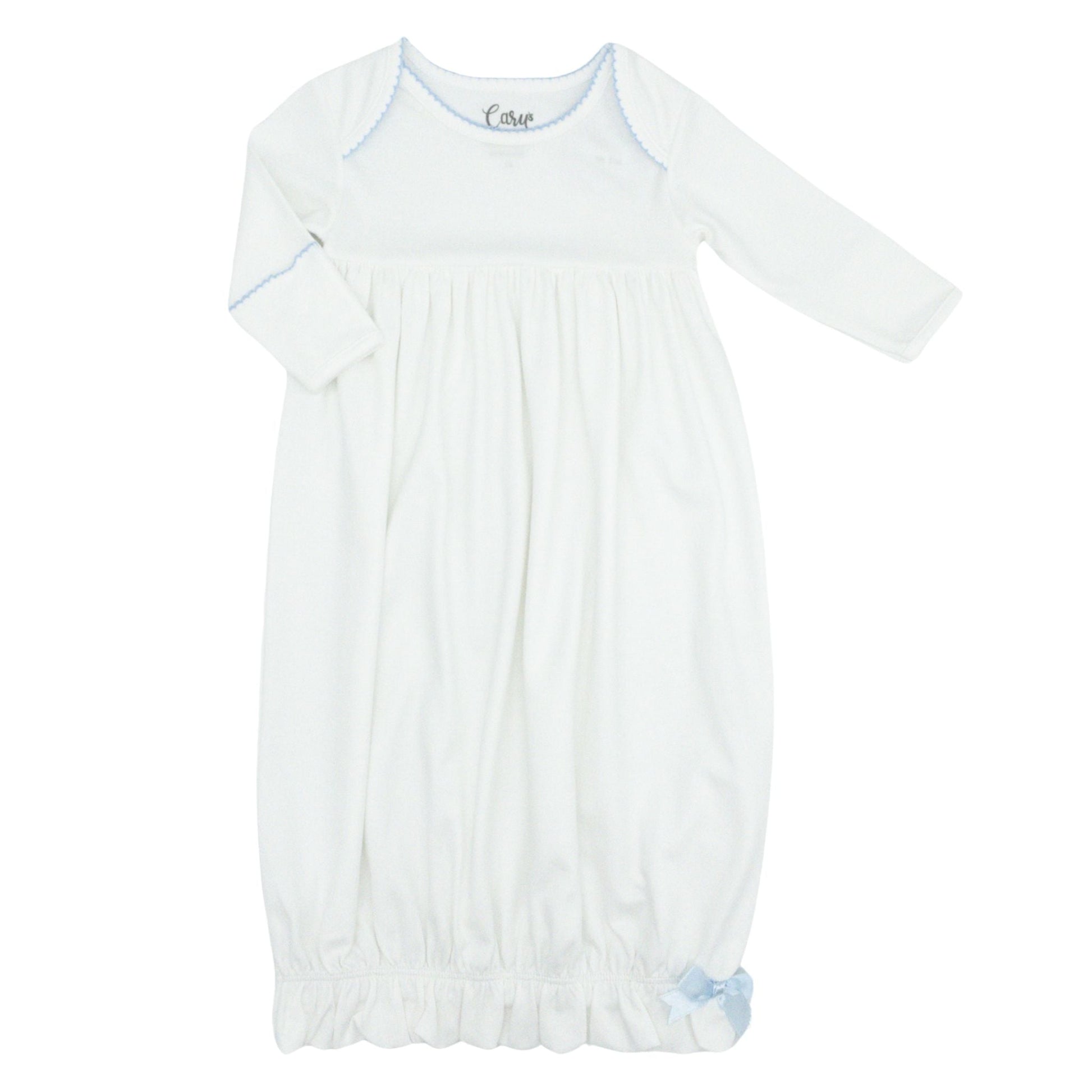 Pima Knit Lap Shoulder Gown with Picot Trim - White with Blue
